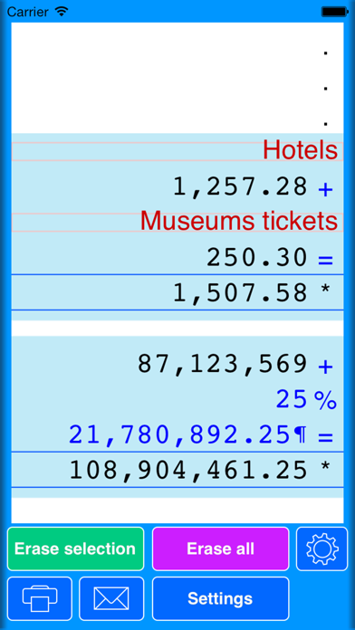 2. The ability to let group of calculation performed in the two above modes to co-exist in the same ‘paper roll’ is an exclusive feature of Calcoliner.